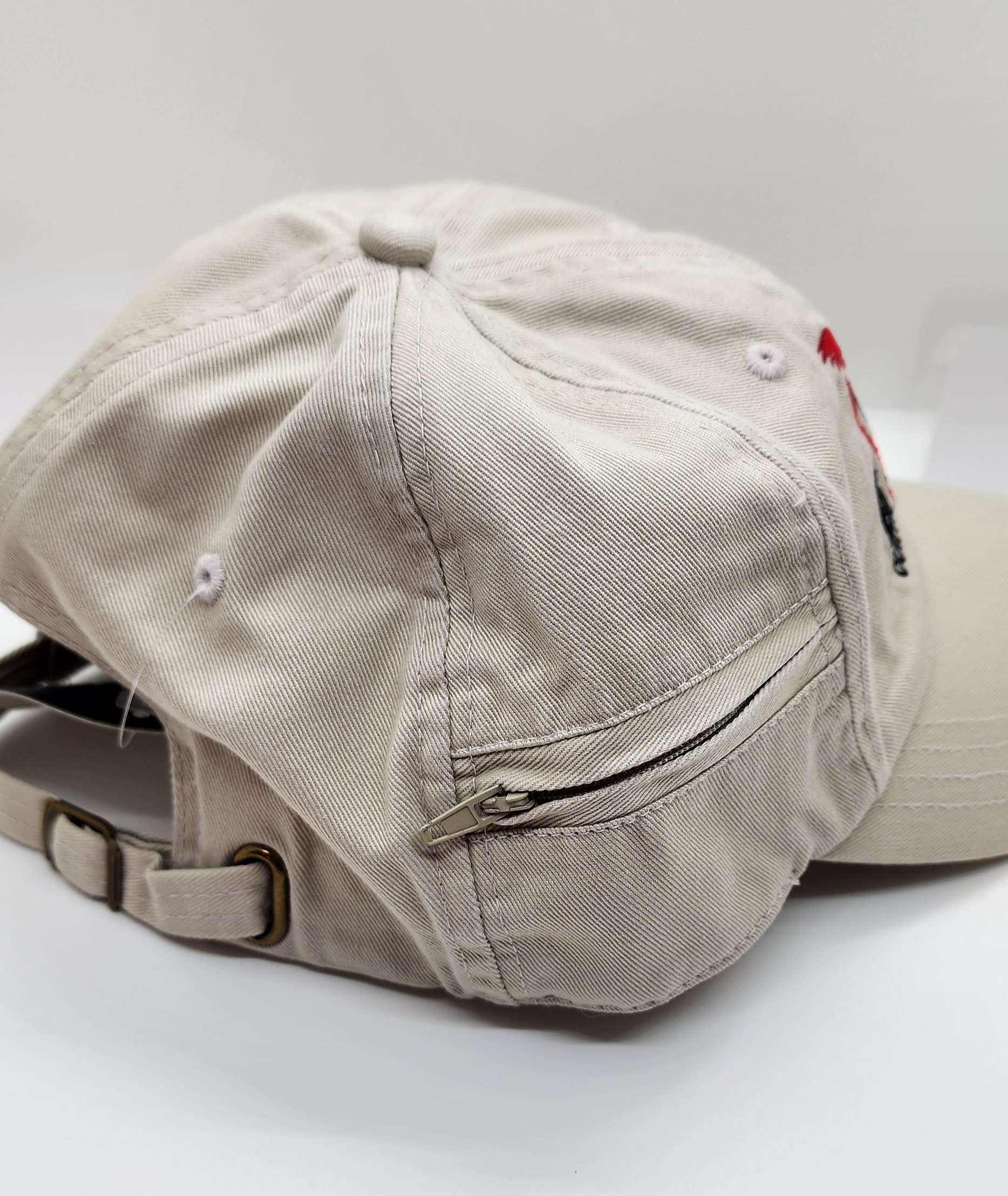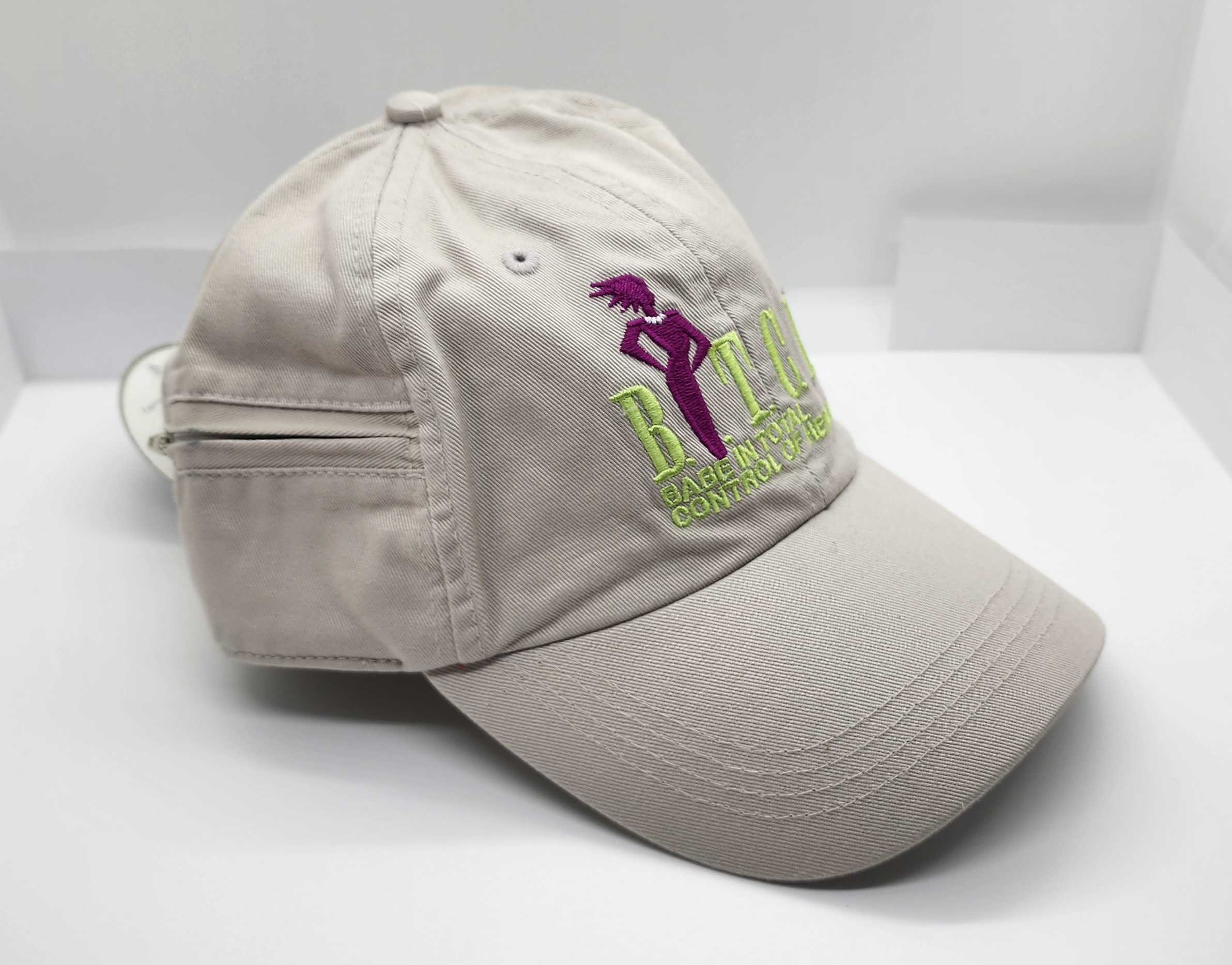 You’ll never leave home without this terrific hat. The side zipper pocket will hold keys, money, lipstick – even a credit card! This is the best fitting hat we have ever tried! Available in Tan